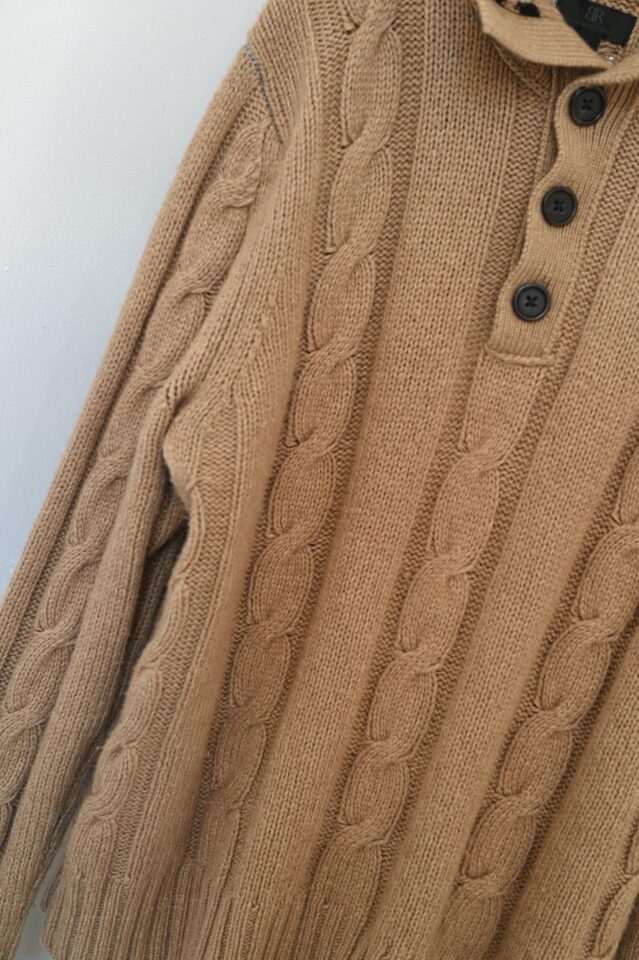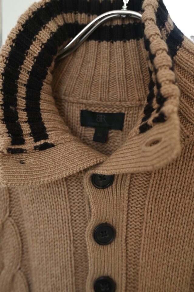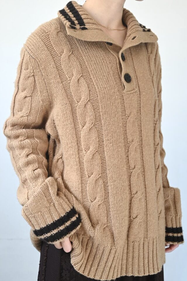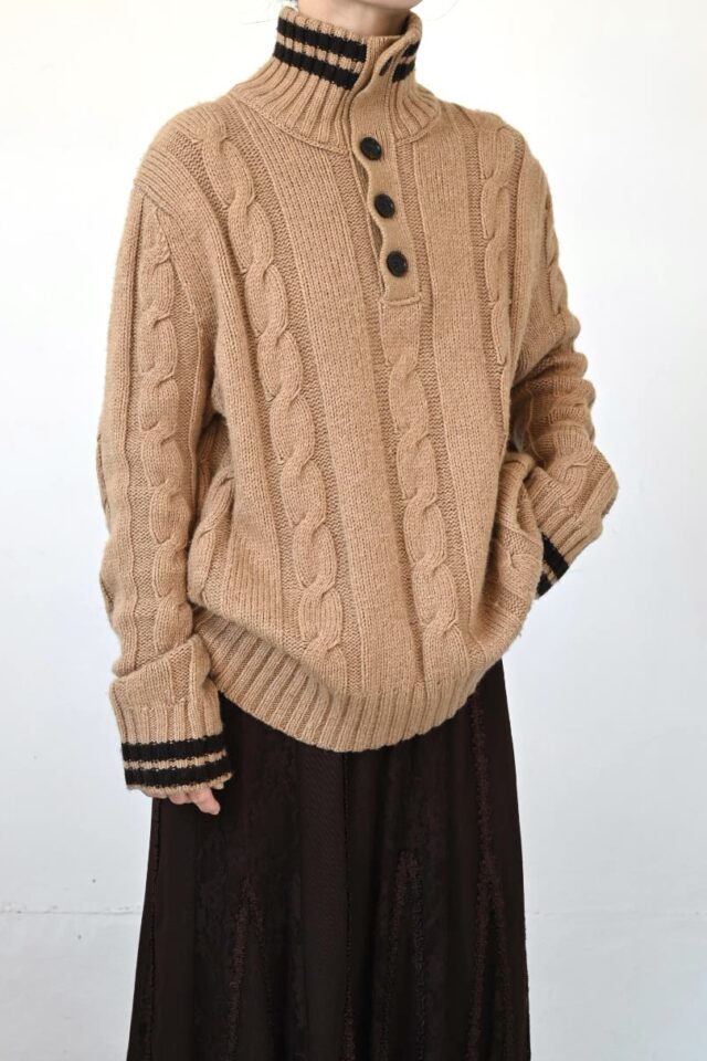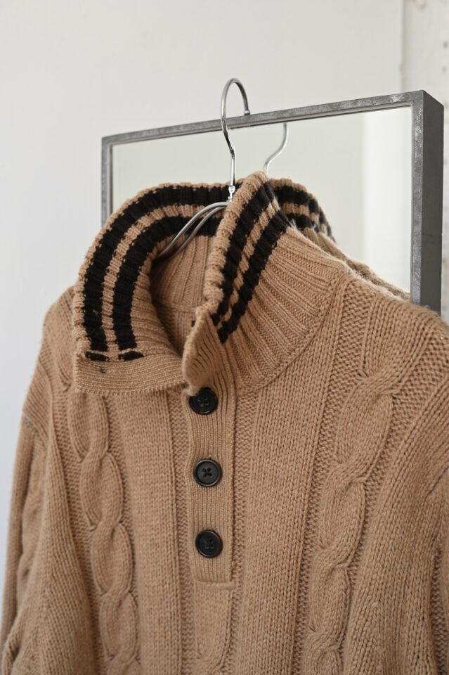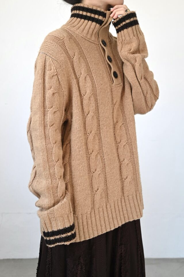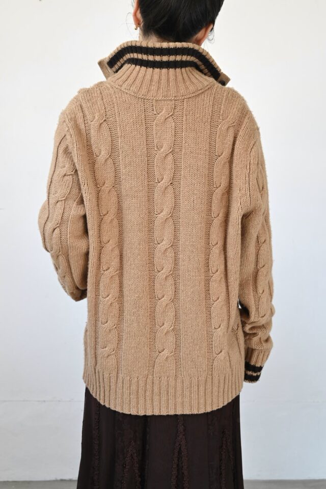 一見メンズライクなセーターですが、襟元で女性らしくも変化します。