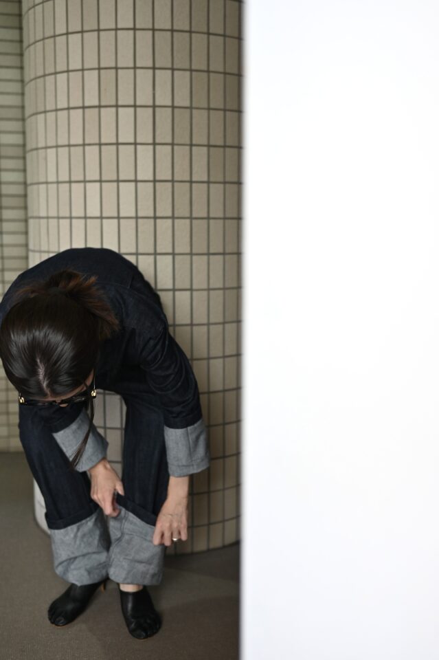 手足のレングスの長さを活かして太折りして着るのがおすすめ。コントラストが効いてとてもお洒落。