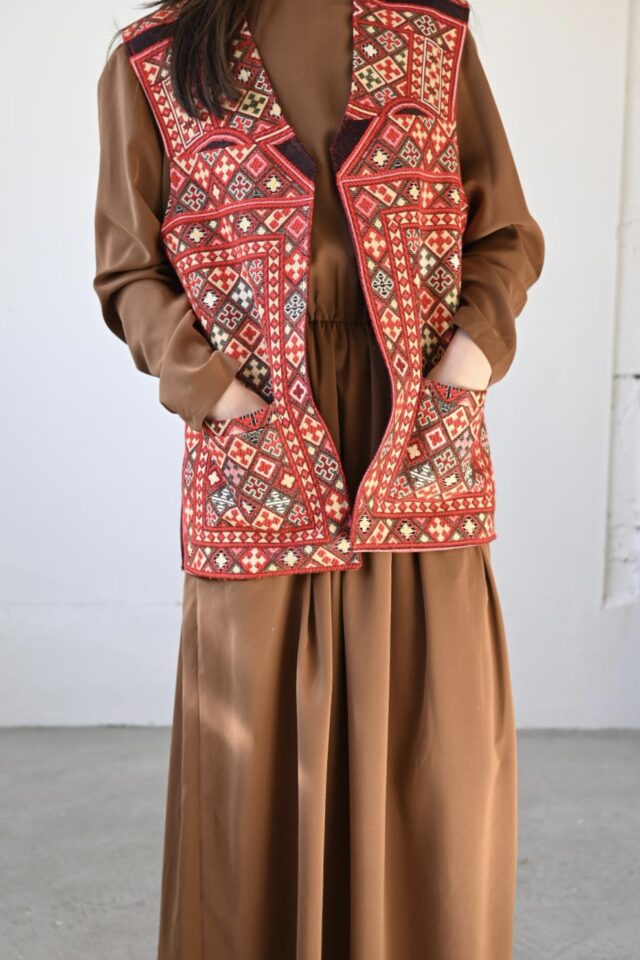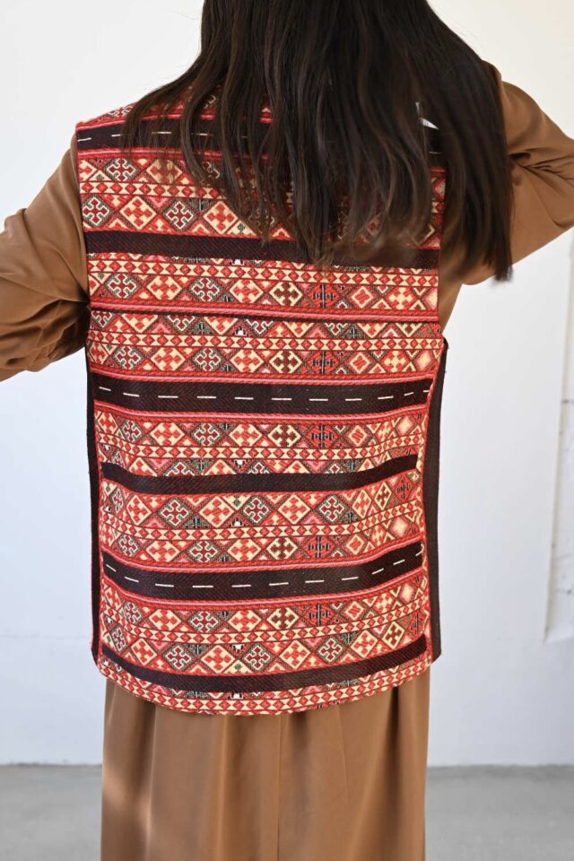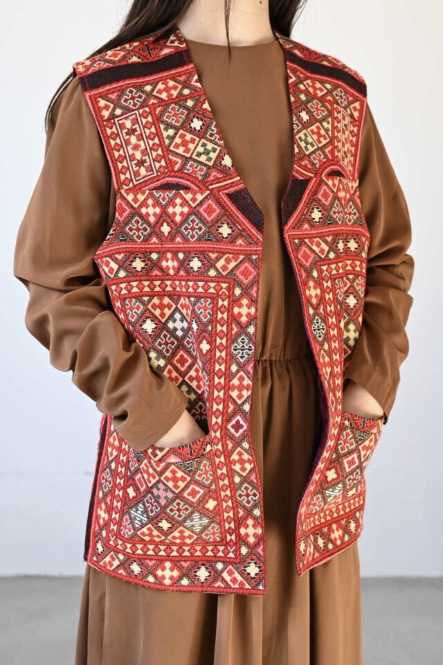 色鮮やかで細やかな刺繍が全面に施されたベスト。