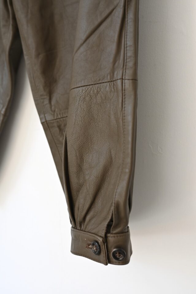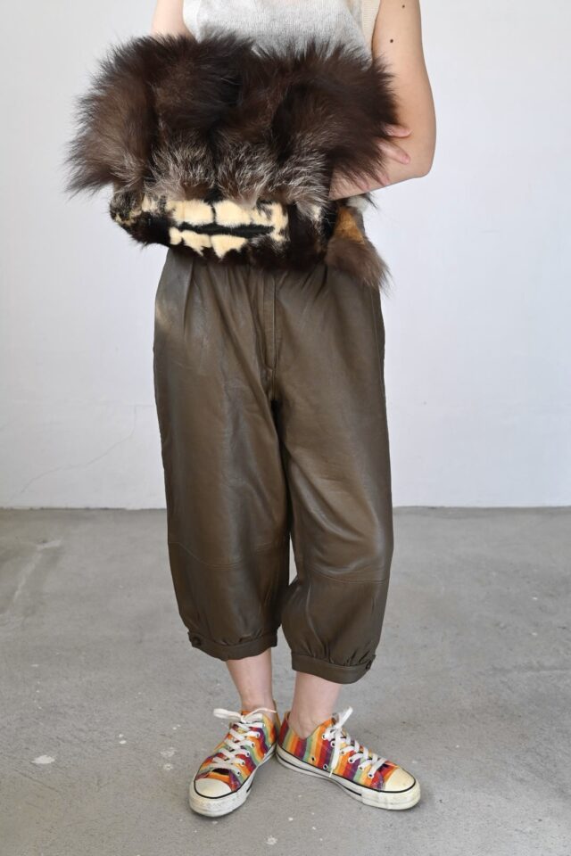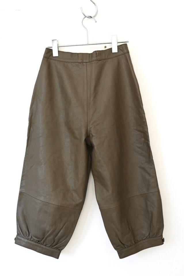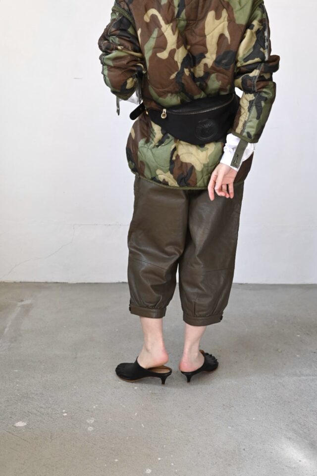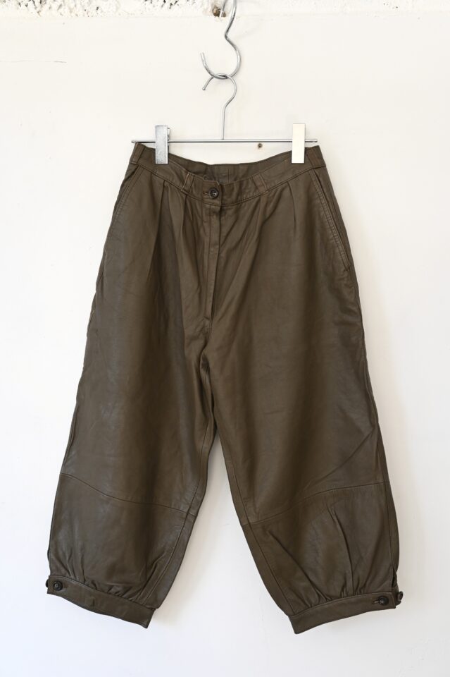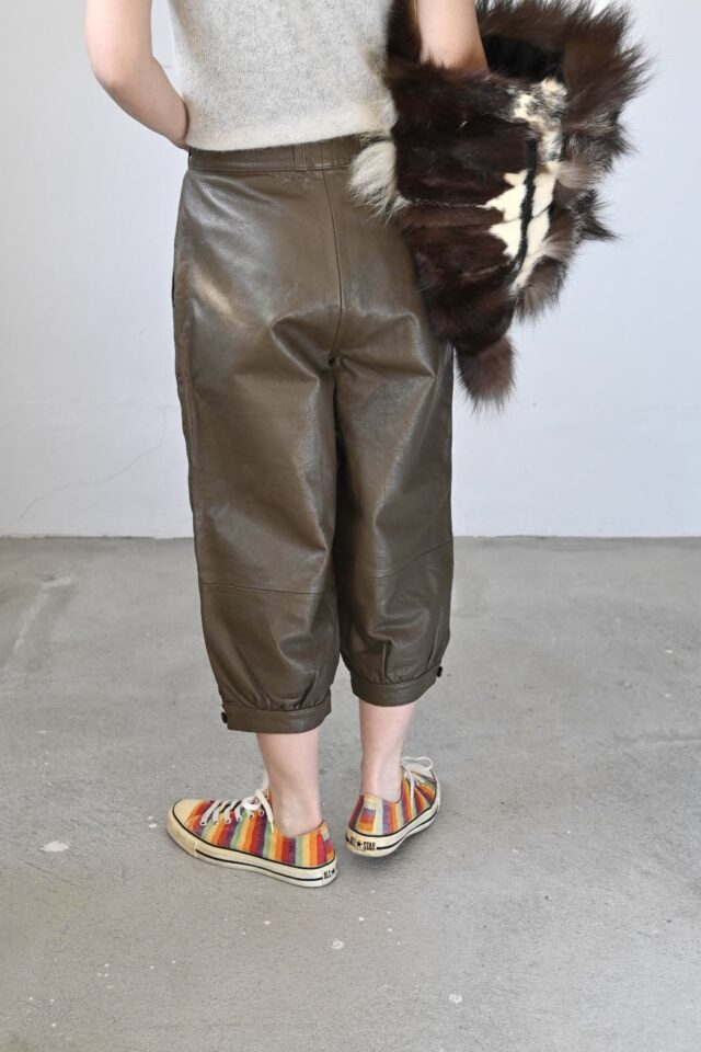 レザーのクロップドパンツ。