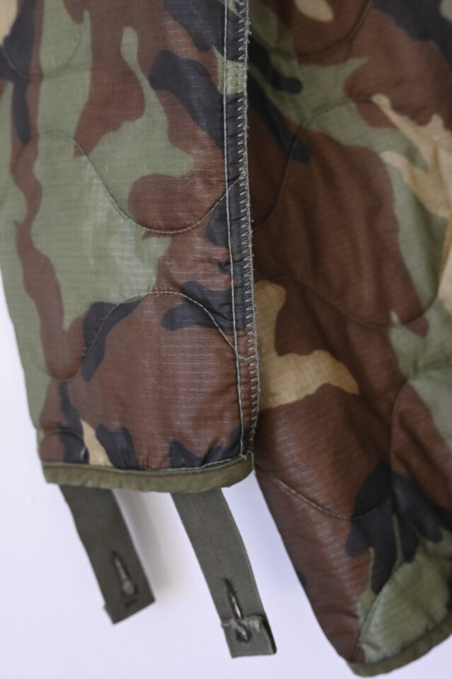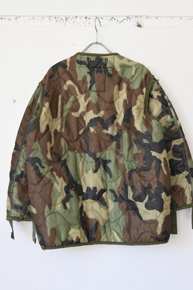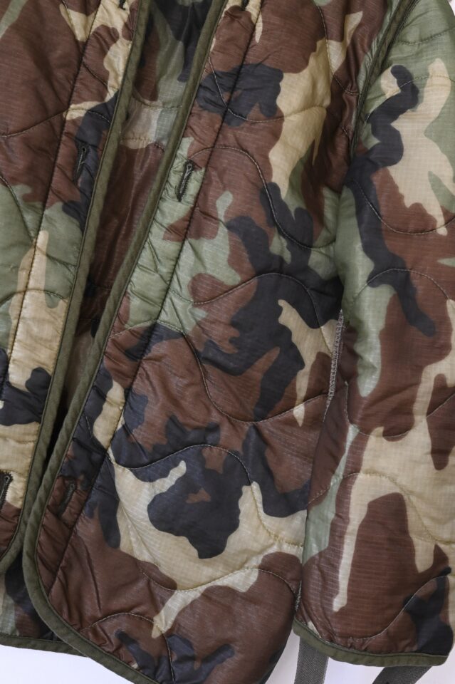みなさんご存知のミリタリーのキルティングライナーですが、こちらの迷彩パターンは珍品かと。