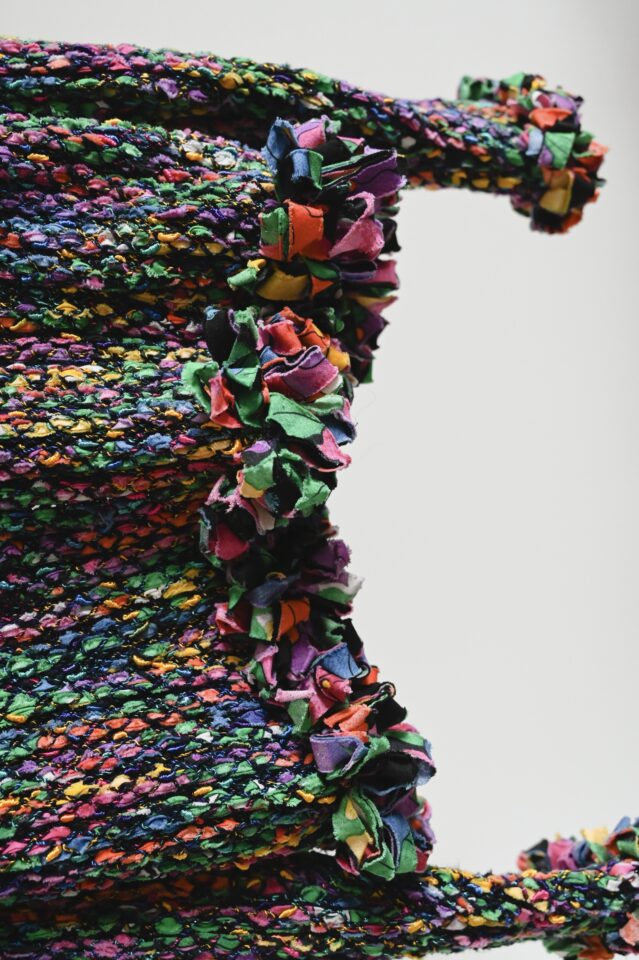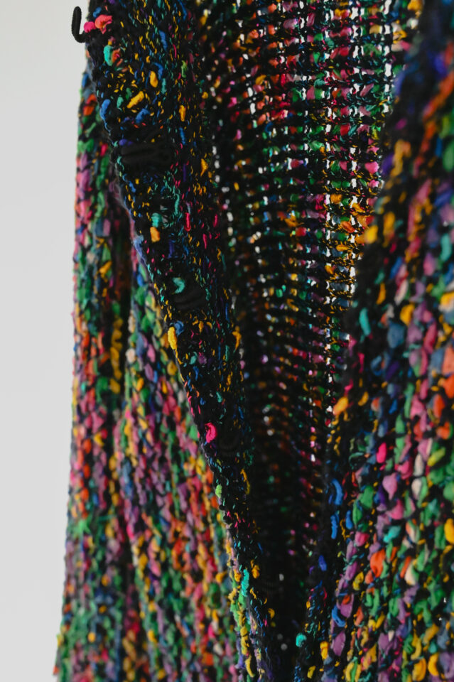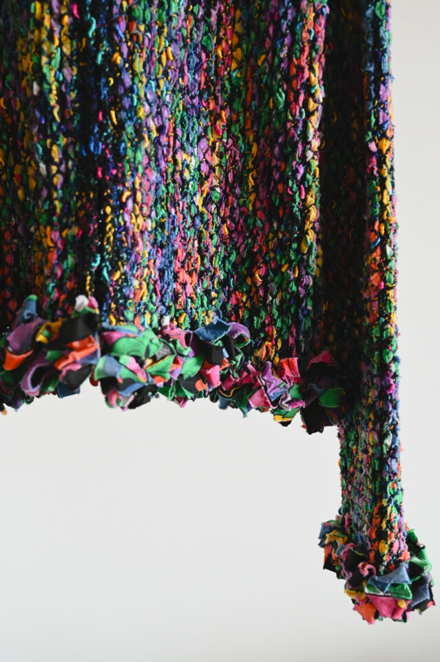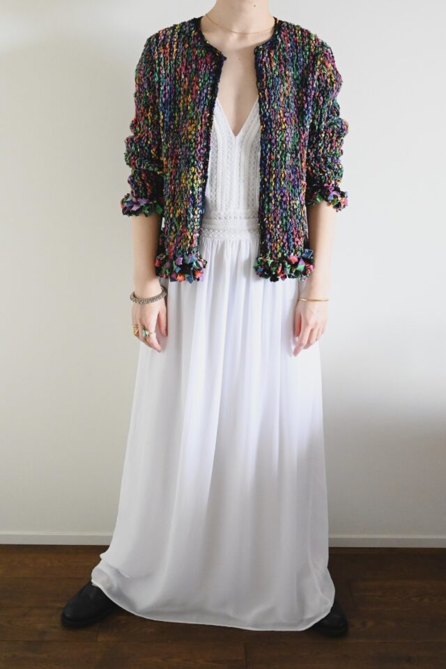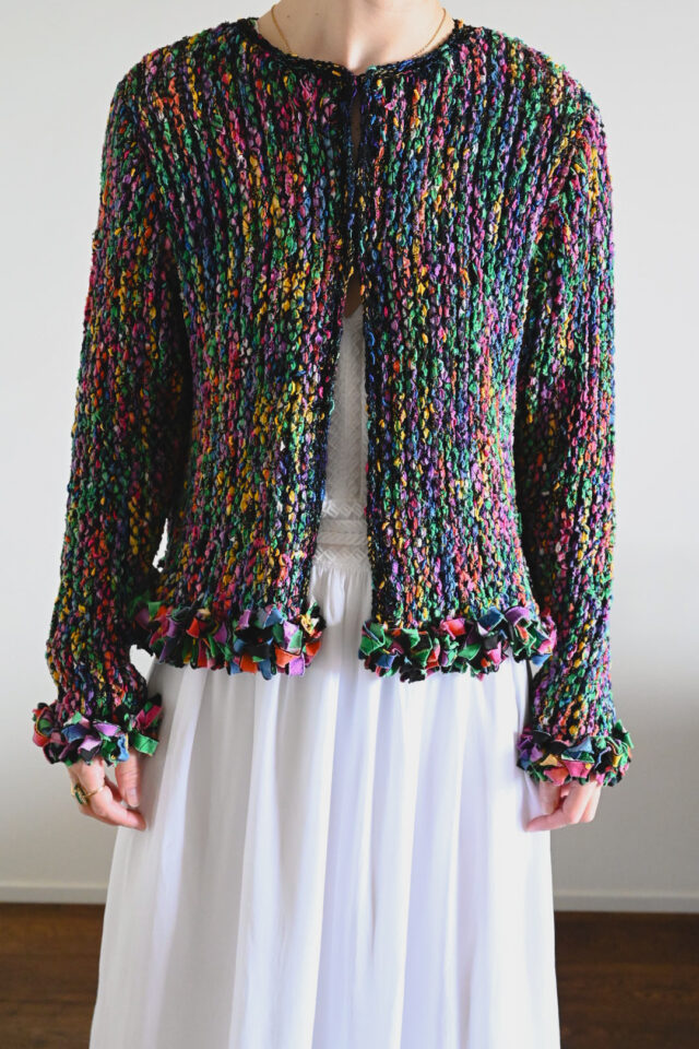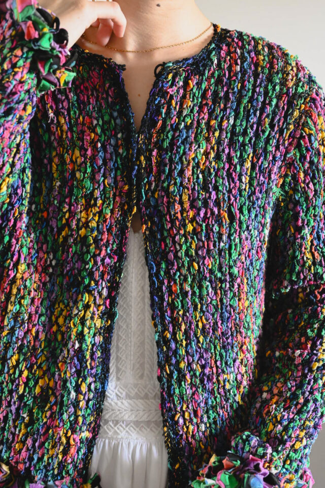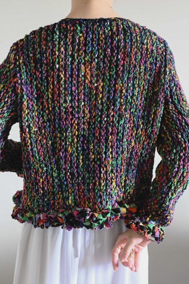 カラフルな色が編み込まれたデザインのヴィンテージジャケット。