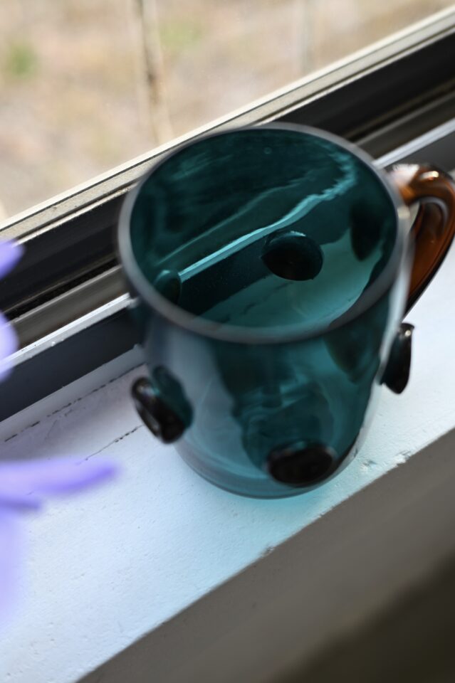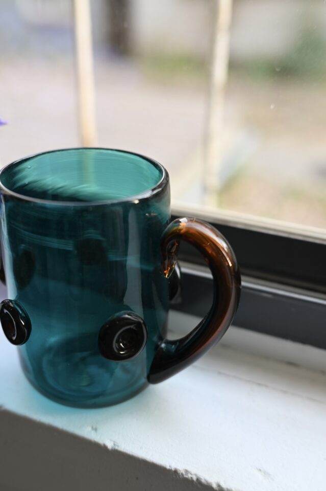 絶妙なカラーリングが素敵なハンドル付きのグラス。