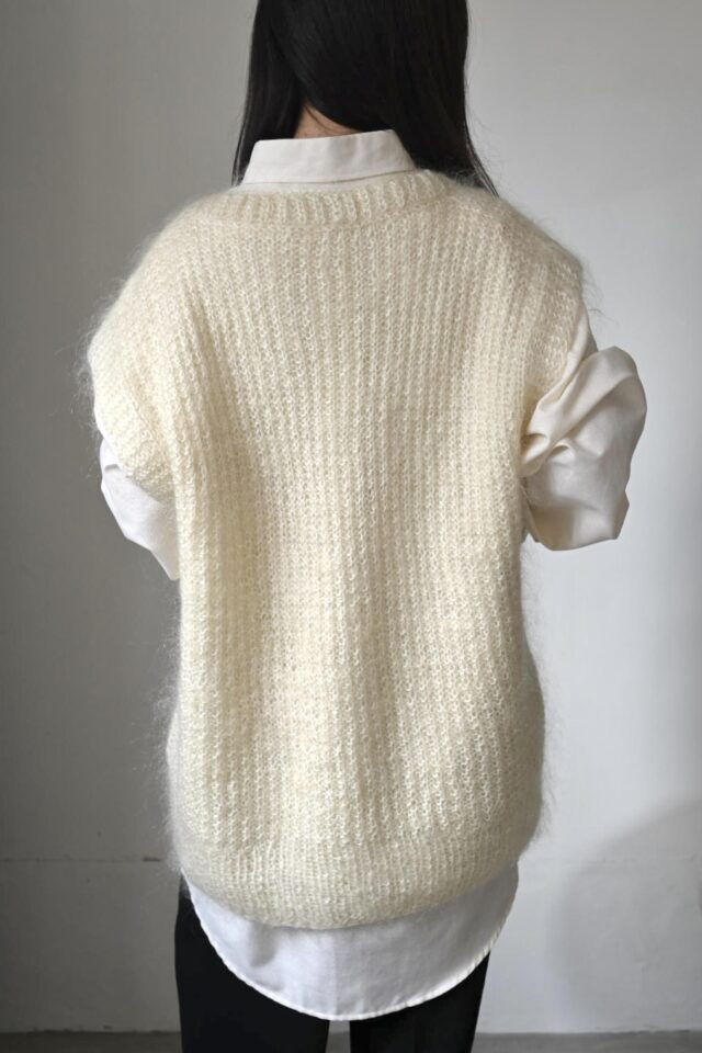 腕周りにゆとりがあるので、シャツやタートルなど様々に重ねられます。