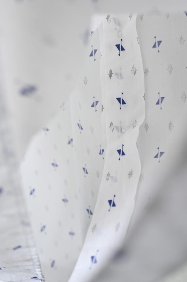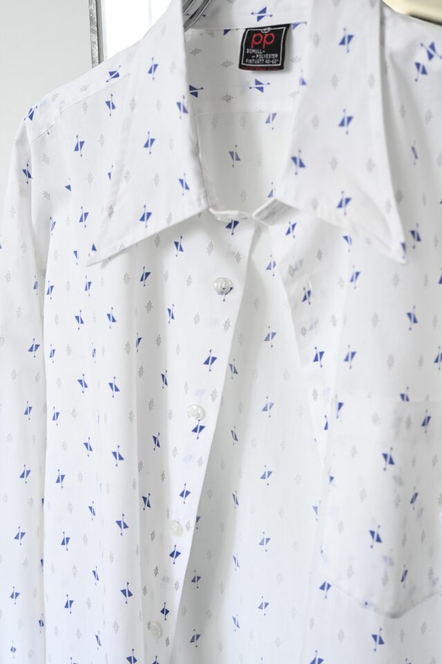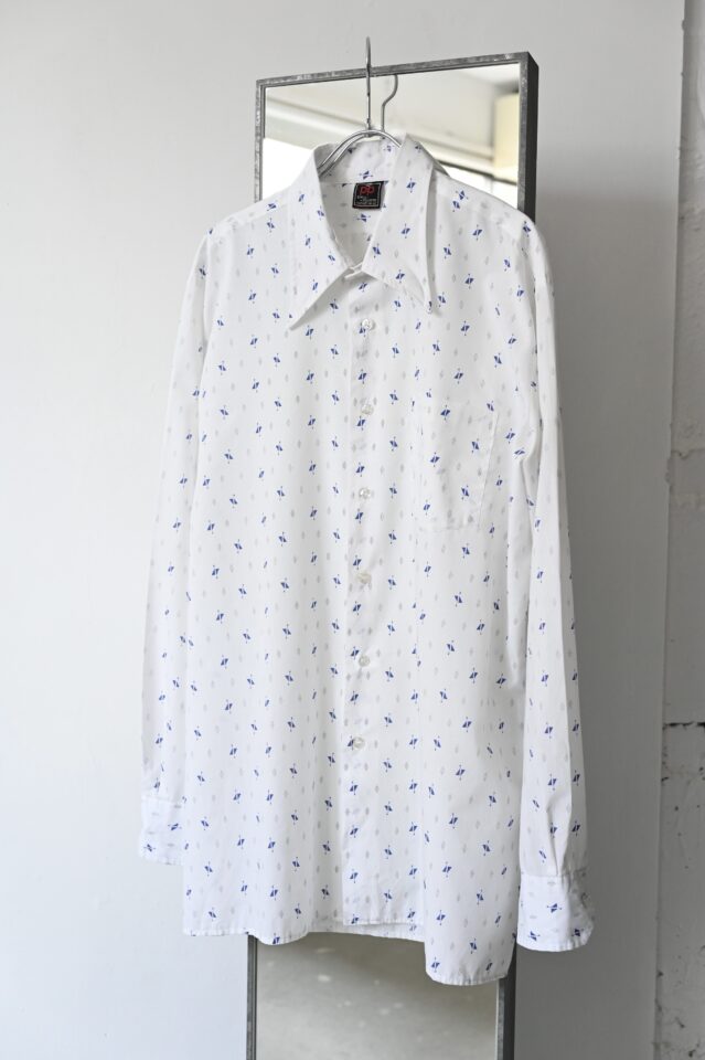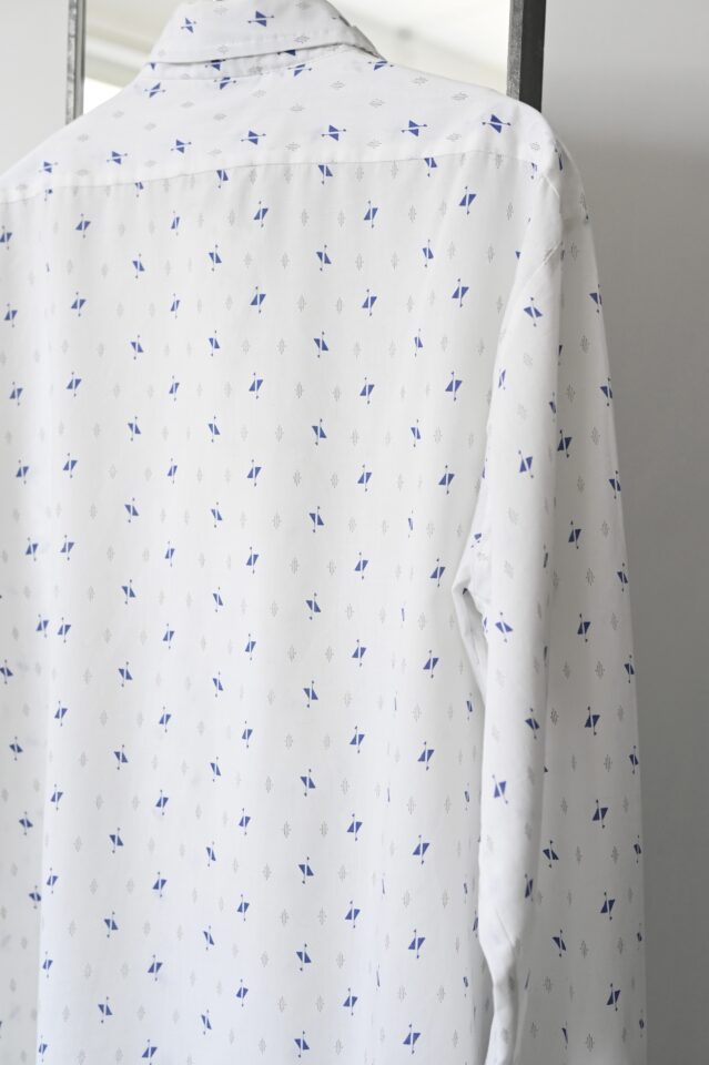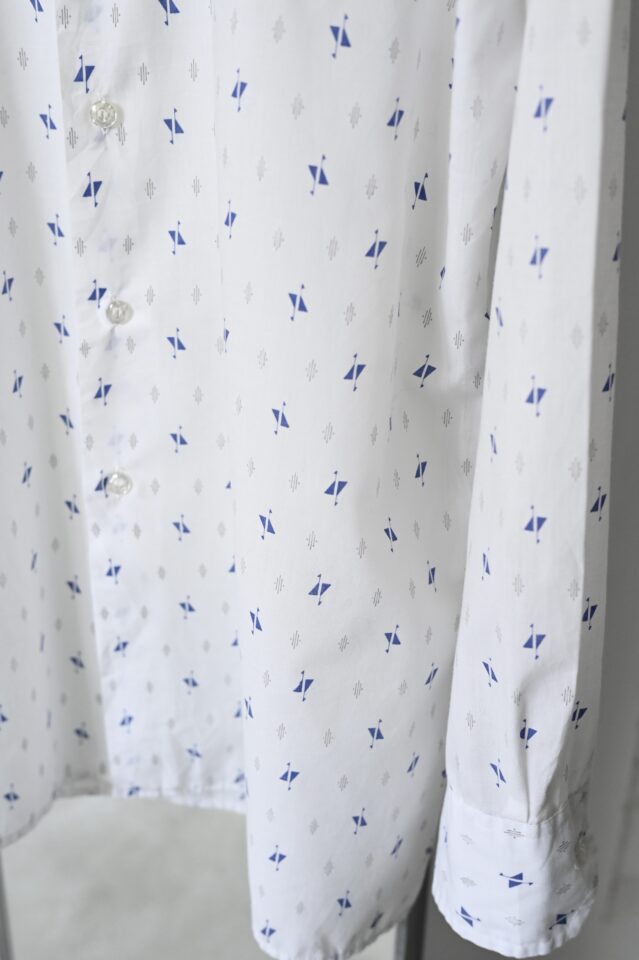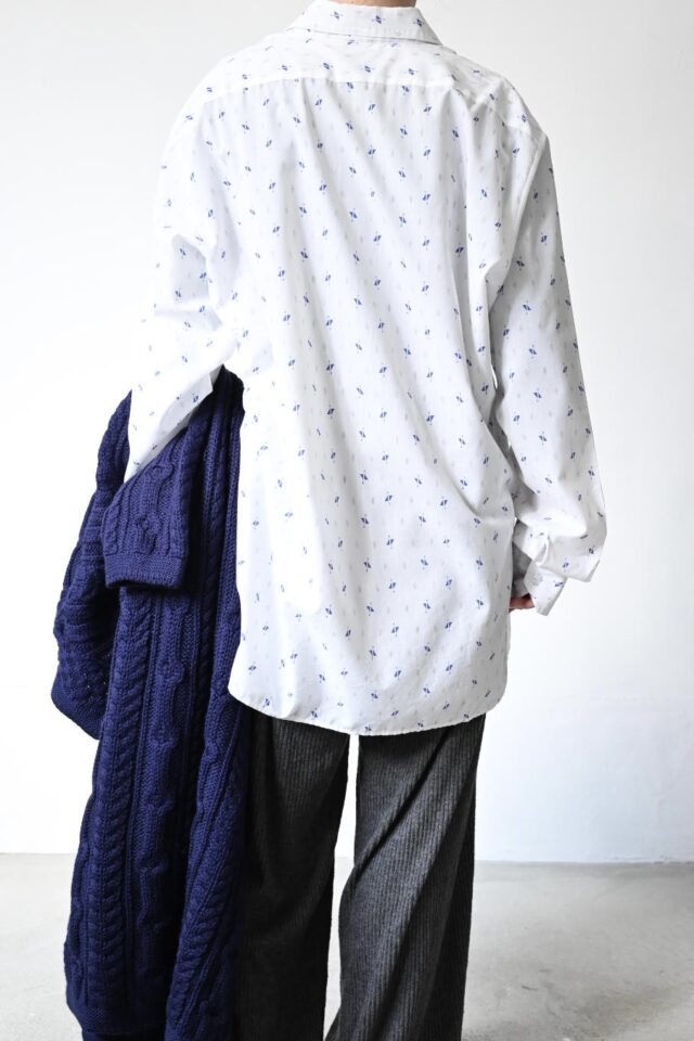 透け感のある白シャツは抽象的な模様に惹かれて買い付けました。