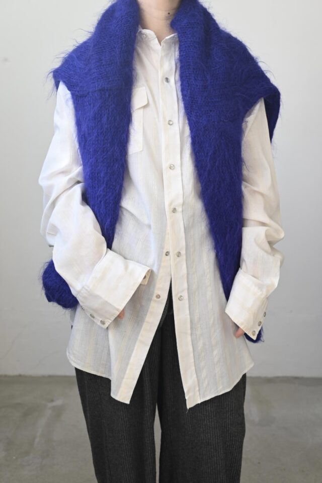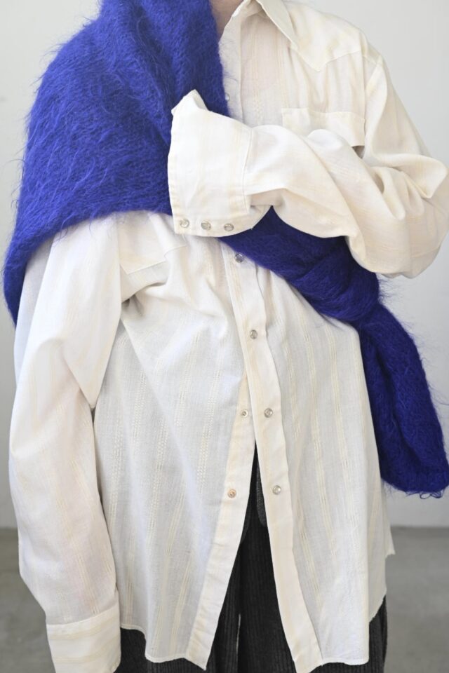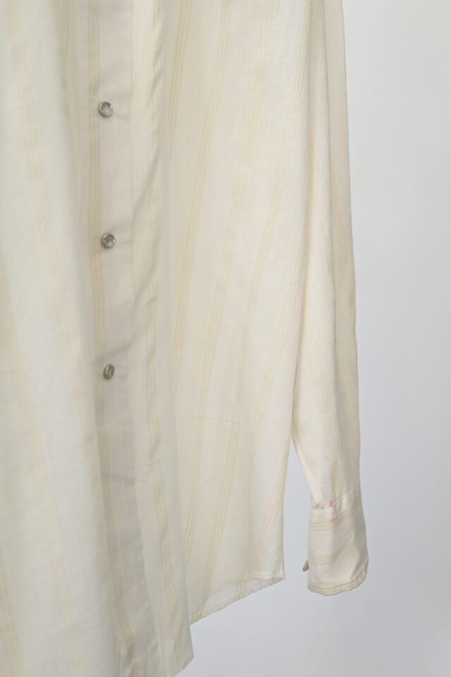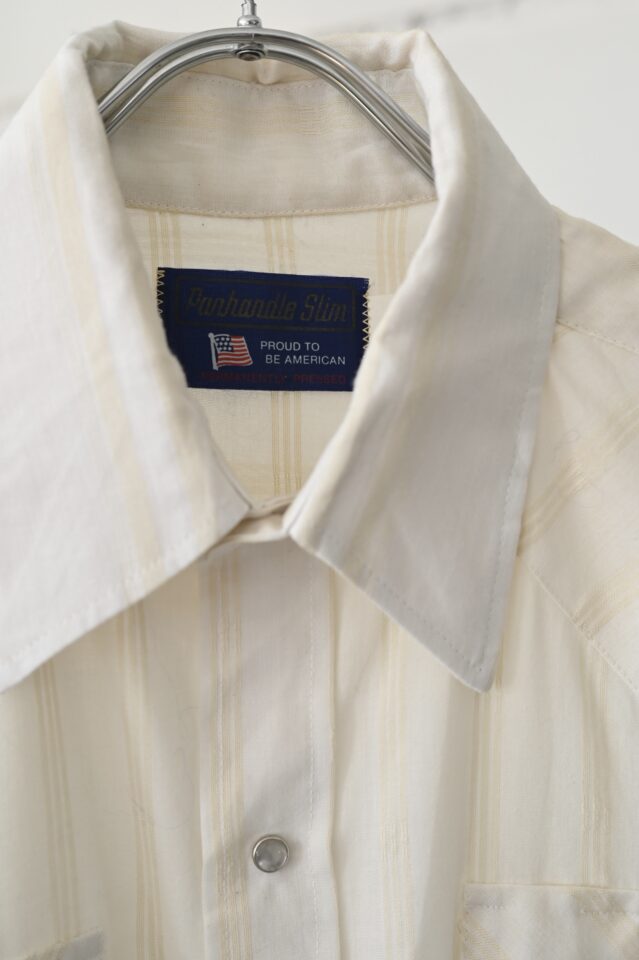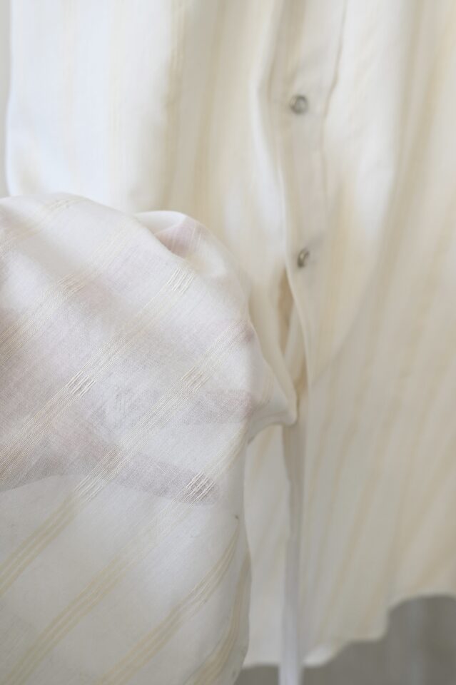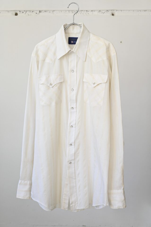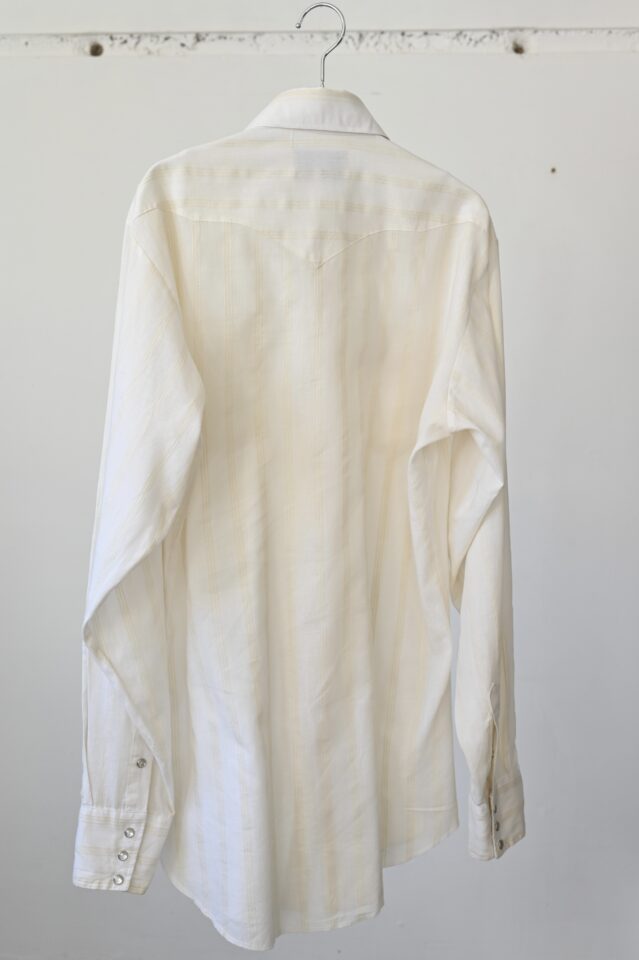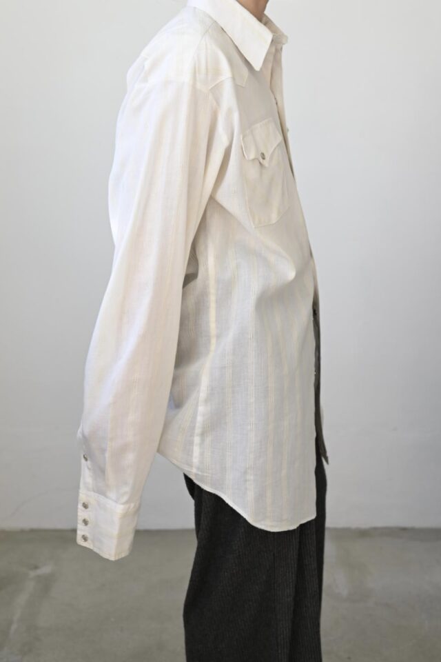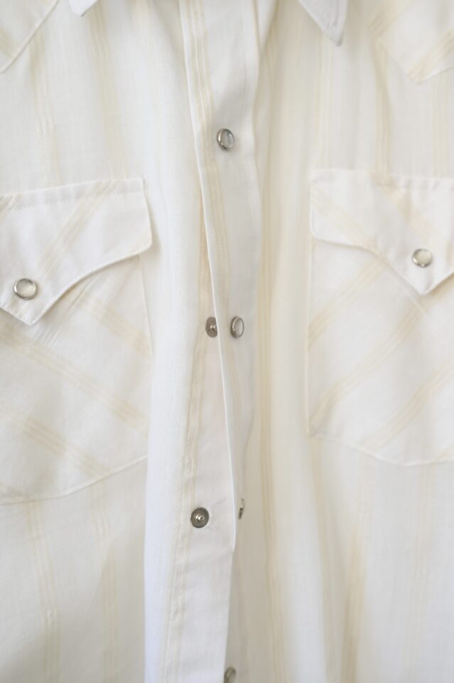 透け感のあるオフホワイト、ストライプ柄のウエスタンシャツ。